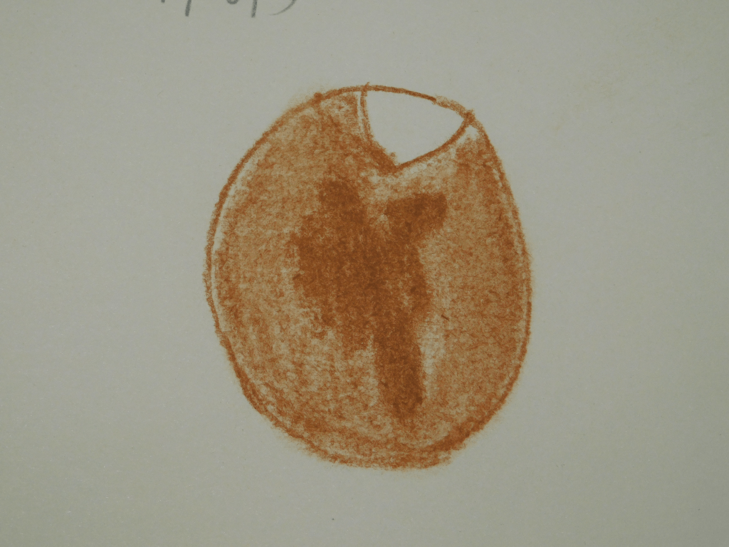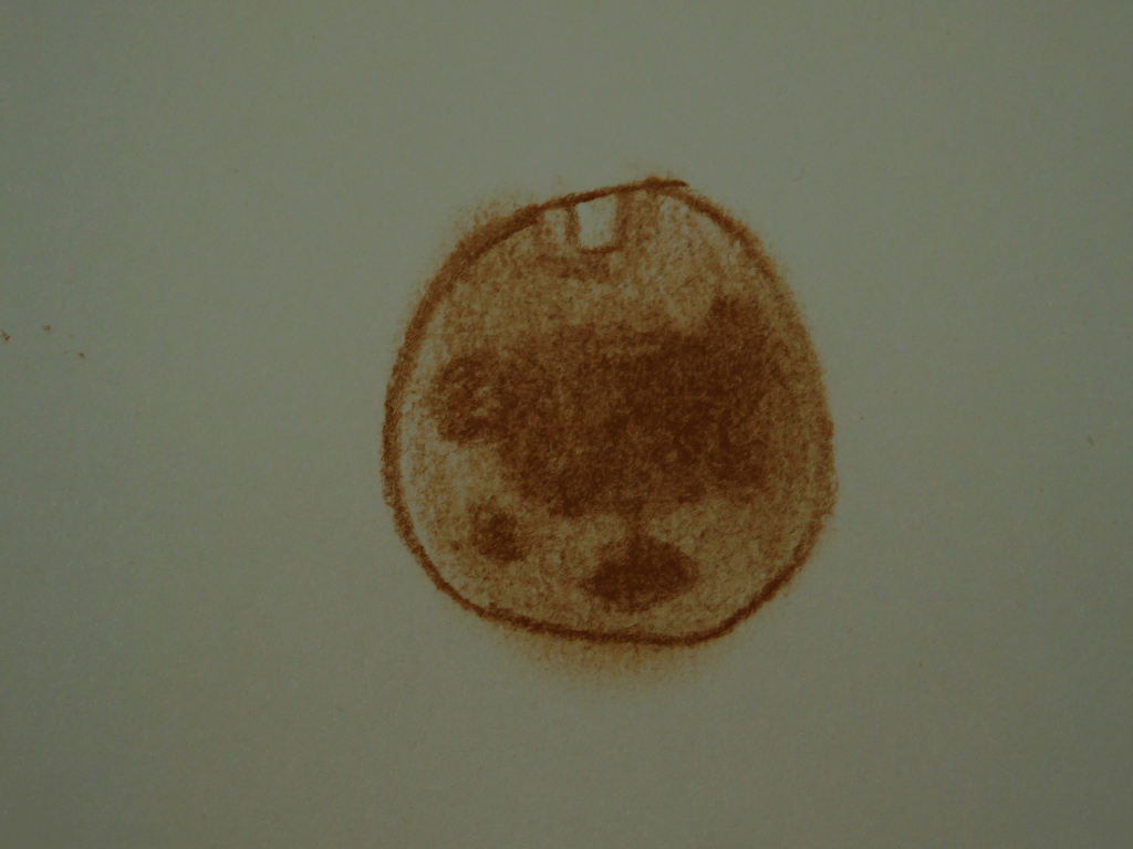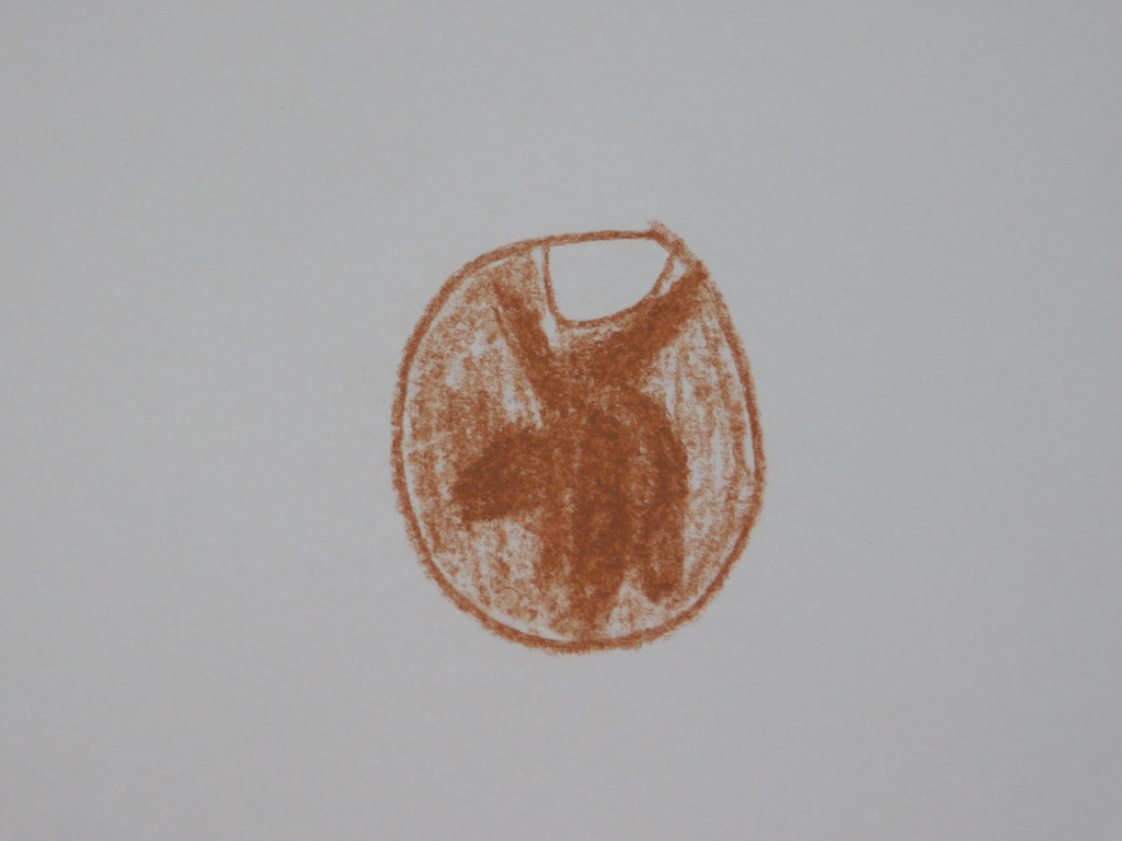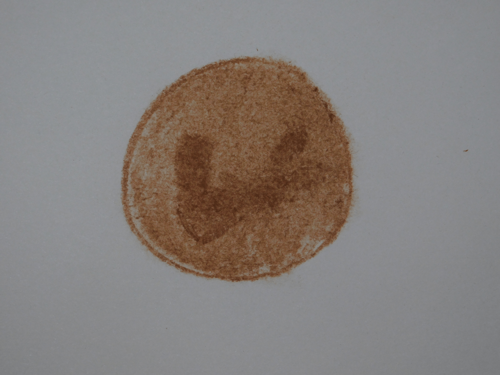 18th of August. Now I think I finally have something to write home about! While the pastel pencils weren’t the best, the charcoal pencils really did the trick, and from this point on all of my Mars sketches would be with the charcoal pencils. I think on this third attempt there is actually detail I can actually talk about. The white patch at the top is the southern ice cap. The dark red parts are the basalt rock, from volcanoes that happened millions of years ago or more, and the bright red parts are the dust that covers much of Mars.