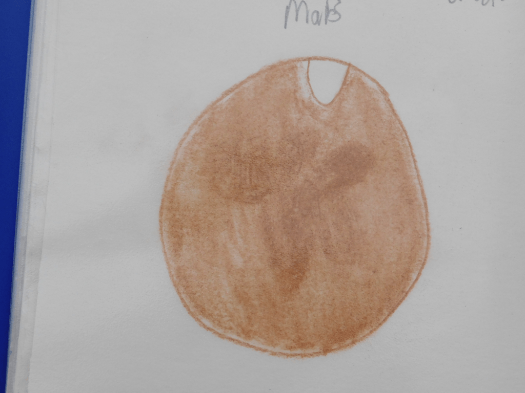 11th August 2020. First attempt at sketching Mars at opposition. At least I captured the ice cap, but I would learn a valuable lesson, pastel pencils are good for sketching many things, but not Mars, they are not good for sketching Mars at all! Although this sketch is kind of adorable it lacks the detail of my later sketches.