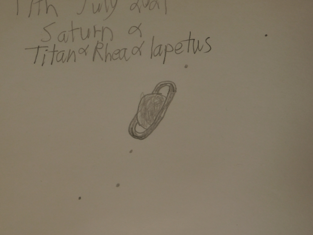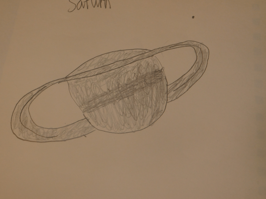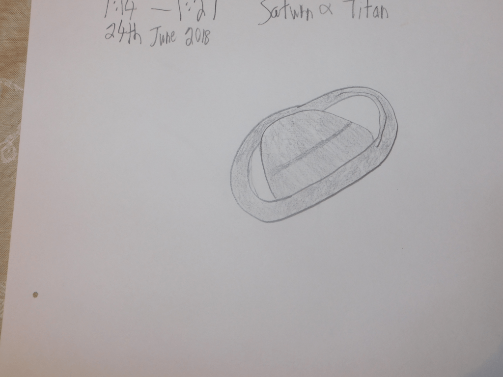 This is my first sketch of Saturn, and for some reason, and I don’t know why, my sketches of Saturn keep getting worse. I don’t know why this is. It’s like the more detail I see the more my brain becomes overwhelmed. The moon is the astronomical object where there is the most detail, and I can’t sketch it to save my life.