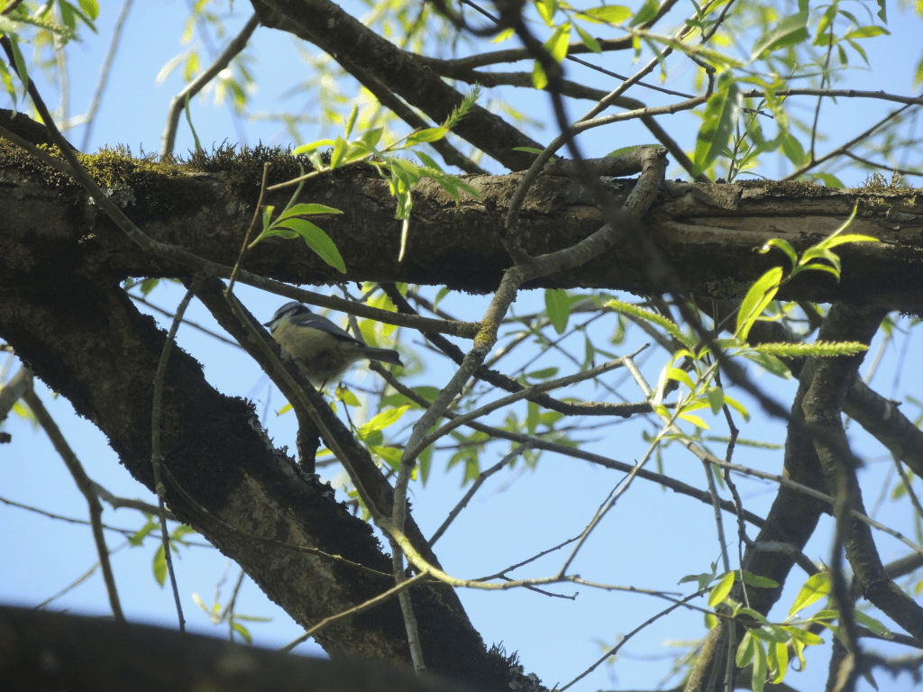 A blue tit on a tree near the river
